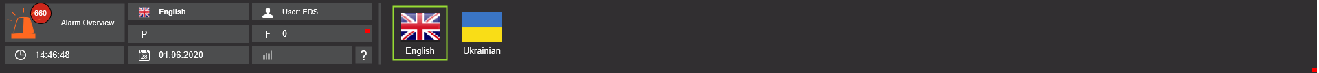 За допомогою мовної панелі можна перемикатися на іншу мову користувацького інтерфейсу. На даний момент доступні англійська і українська мови.