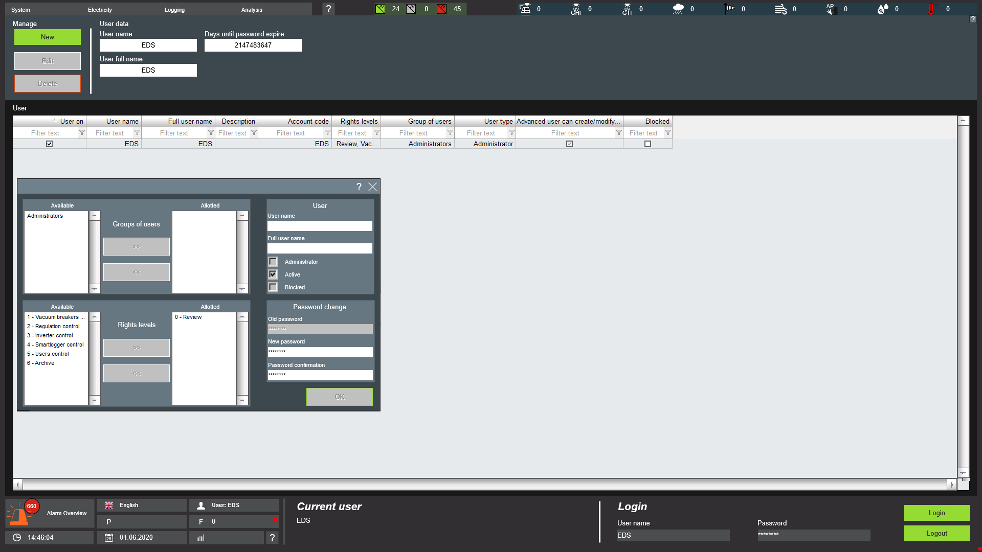 Тут додано систему доступу користувачів, перемикання між мовами, відображення кількості інверторів і даних метеостанції, повну інформацію по інверторам та іншому обладнанню, інтегровано керівництво оператора і багато іншого.