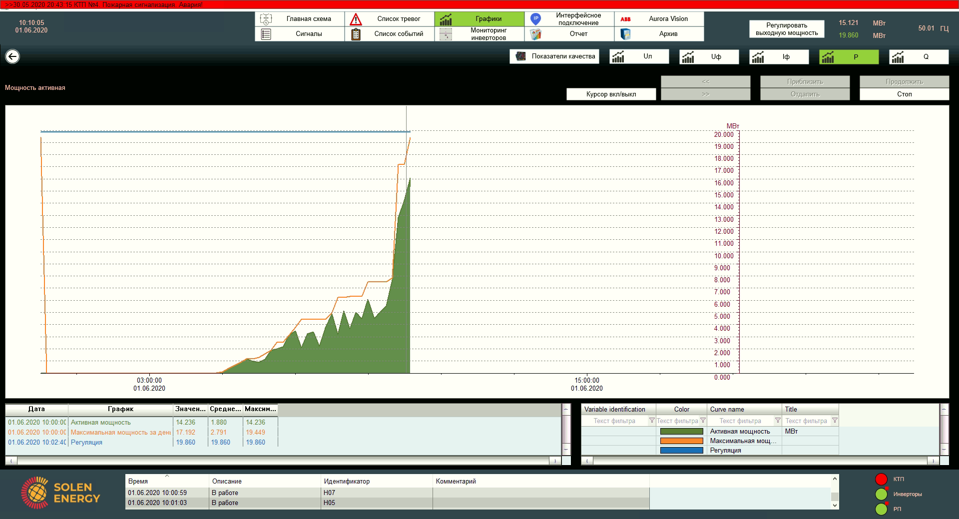 Один з головних параметрів – вихідна потужність станції. SCADA дозволяє легко регулювати її шляхом уставки максимальної потужності роботи інверторів. Для цього існує декілька методів.