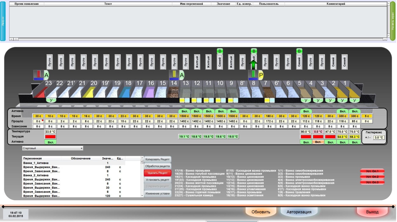 Технологія гальванізації полягає в тому, що необхідно постійно слідкувати за температурою процесу, часом витримки в кожному з хімічних реагентів, рівнем рідини у ваннах. На початку робота була повністю ручна. Тобто троє робочих ходили за автооператорами та за допомогою секундомірів витримували вироби в тому чи іншому реактиві. При цьому так званий “людський фактор” був дуже помітним. Спеціалістами нашої компанії було розроблено та впроваджено автоматичну систему керування всією лінією.