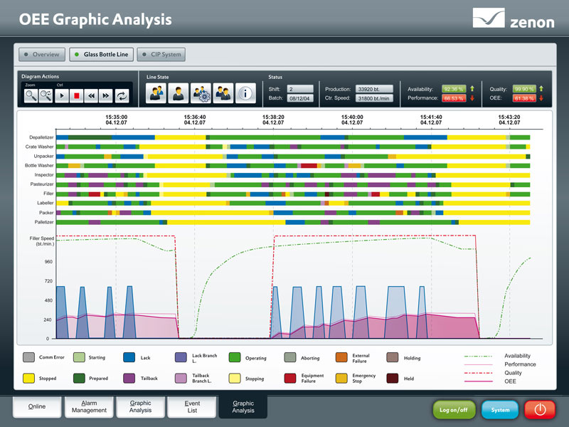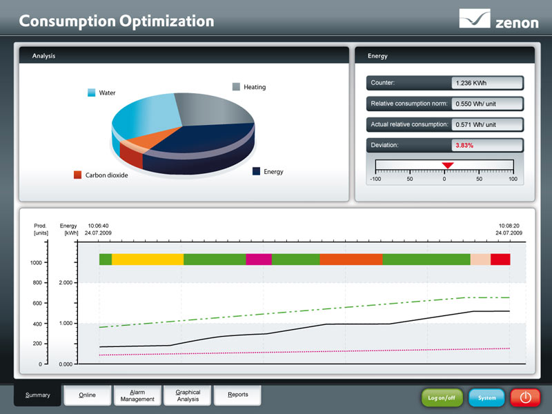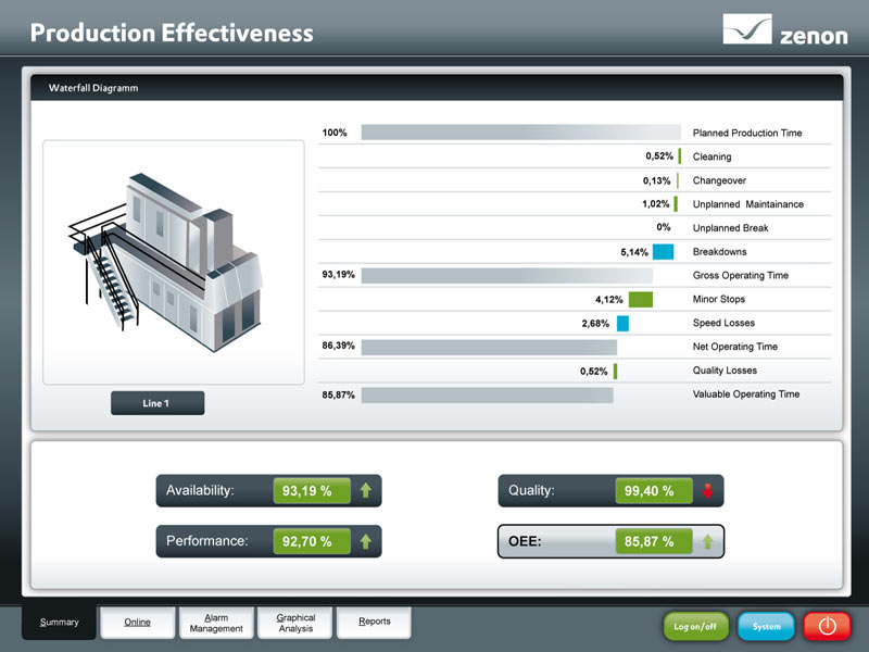 На концептуальному рівні, дотримання вимог TPM, Six Sigma і OEE означає, що система автоматизації реалізує надходження необхідної інформації конкретним людям в конкретний час. Генератор звітів і гнучка мережева архітектура zenon роблять цю задачу реальною.