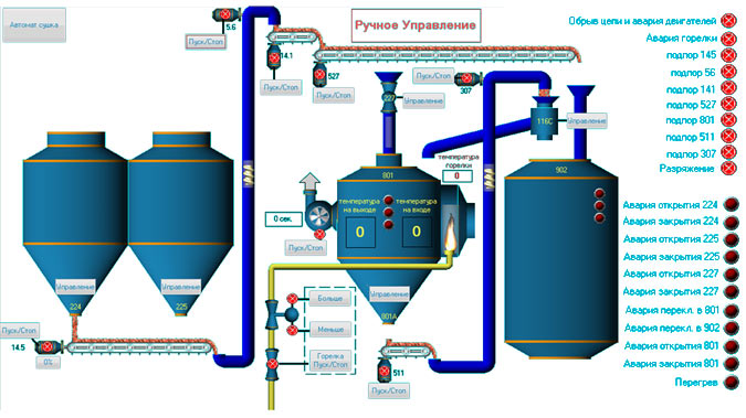 В результате внедрения АСУ был осуществлен переход от ручного к автоматизированному управлению сушки зерна в потоке и достигнуты следующие результаты: