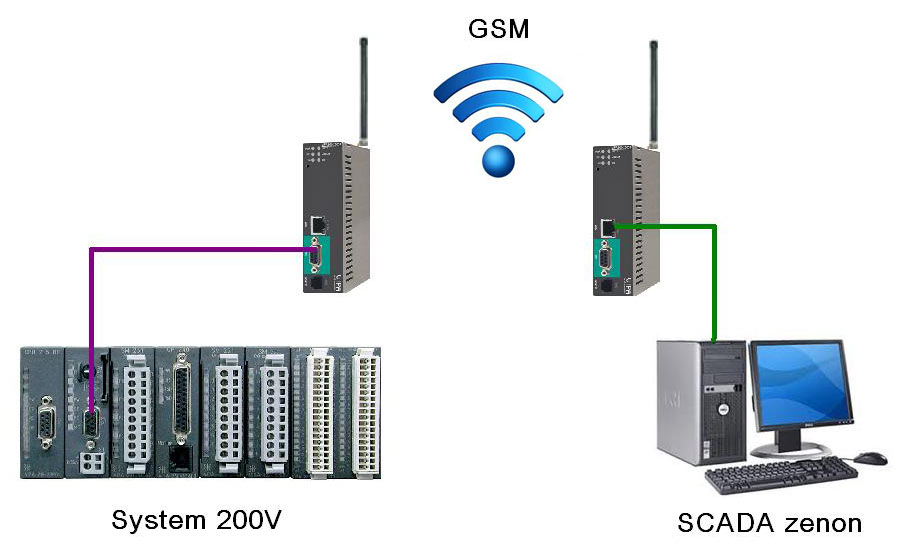 Зв'язок диспетчерського пункту з шафою керування здійснюється за допомогою організації бездротового каналу на базі мережі GSM. В якості модемів використовуються модулі телеметрії VIPA TM-E GSM / GPRS Router.