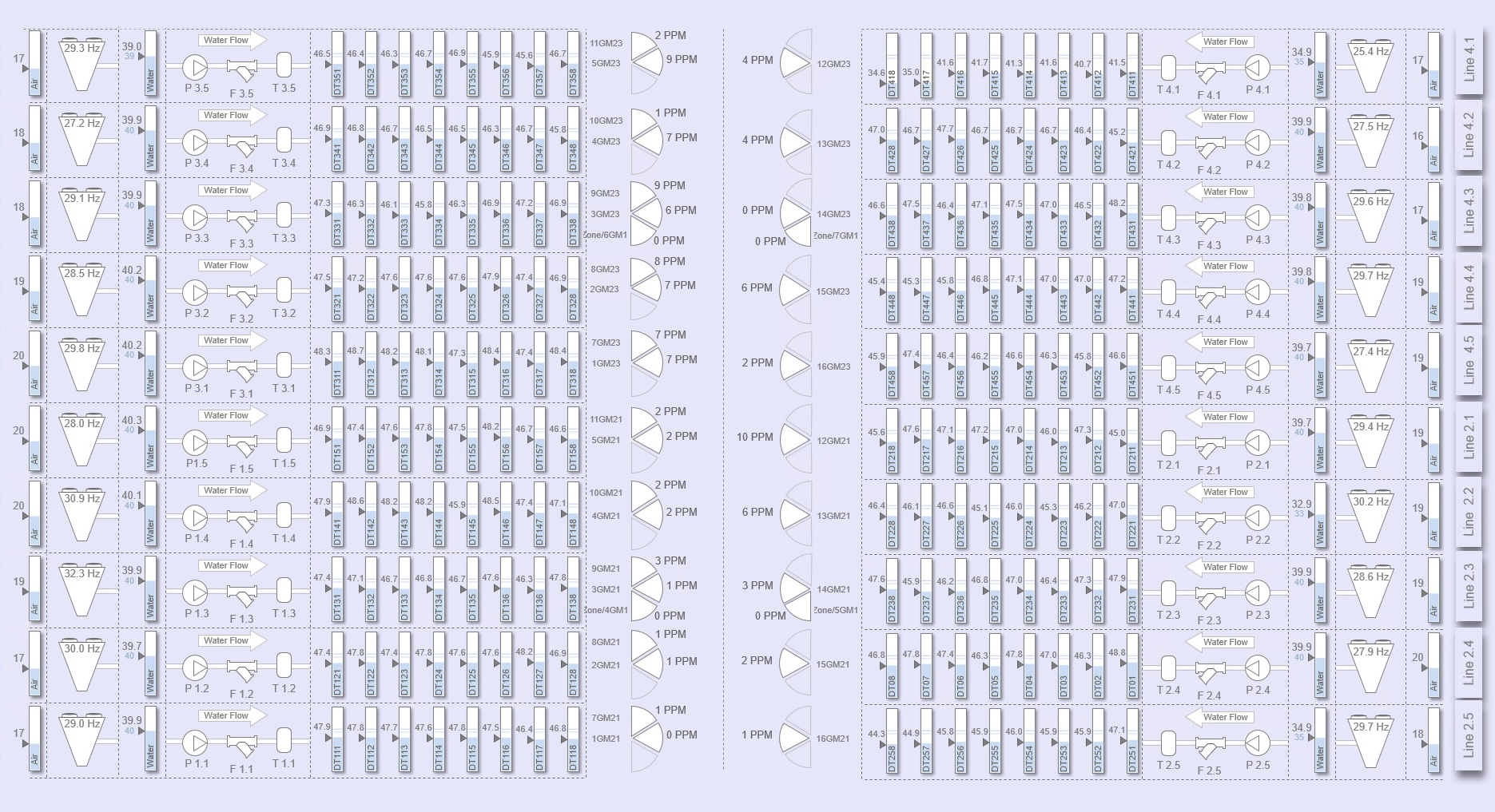 Головна мнемосхема технологічного комплексу виконана за стандартом ISA 101 High Performance HMI. Доступ до керування окремим технологічним обладнанням здійснюється через контекстні меню. Крім того, в системі реалізована ієрархічна структура прав доступу. Так, активація контекстного меню настройки параметрів частотного перетворювача можлива тільки за певних прав доступу – якщо у користувача таких прав немає – йому будуть доступні параметри в режимі відображення або обмеженого функціоналу, наприклад, зміна частоти в певних межах.
