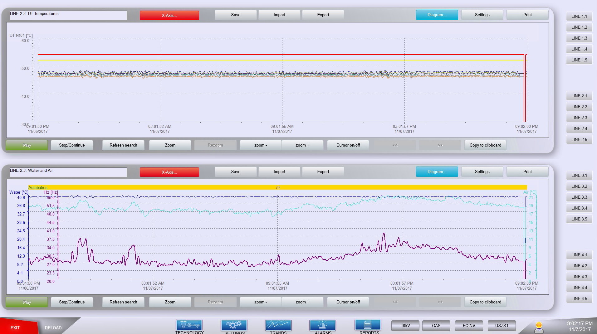 Для відображення графіків (трендів) зміни технологічних параметрів застосовується спеціалізований модуль zenon Extended Trend.