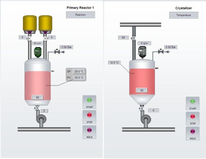 Вікна графічного аналізу, діаграма ефективності, події, тривоги і звіти функціонують по алгоритмам, аналогічним первинній стадії виробництва фармацевтичного підприємства. Цей проект також відповідає всім вимогам FDA.