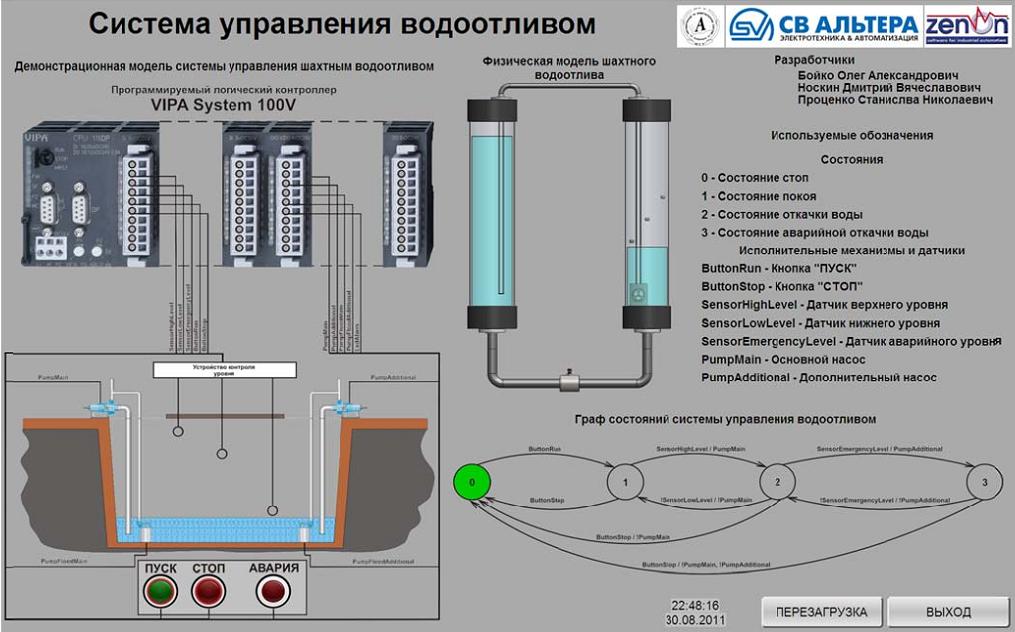Основу системи складають ПЛК VIPA 115-6BL22 з вбудованими каналами входів\виходів і програма візуалізації та диспетчеризації SCADA zenon, на базі якої реалізовано користувальницький інтерфейс управління.