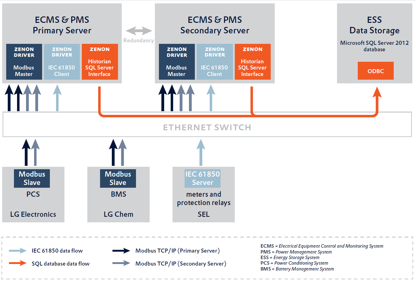 Одним з критеріїв вибору програмного продукту SCADA zenon була можливість безпроблемної інтеграції з існуючим обладнанням ВЕС виробництва LG Electronics та силовими елементами виробництва SEL (Schweitzer Engineering Laboratories).