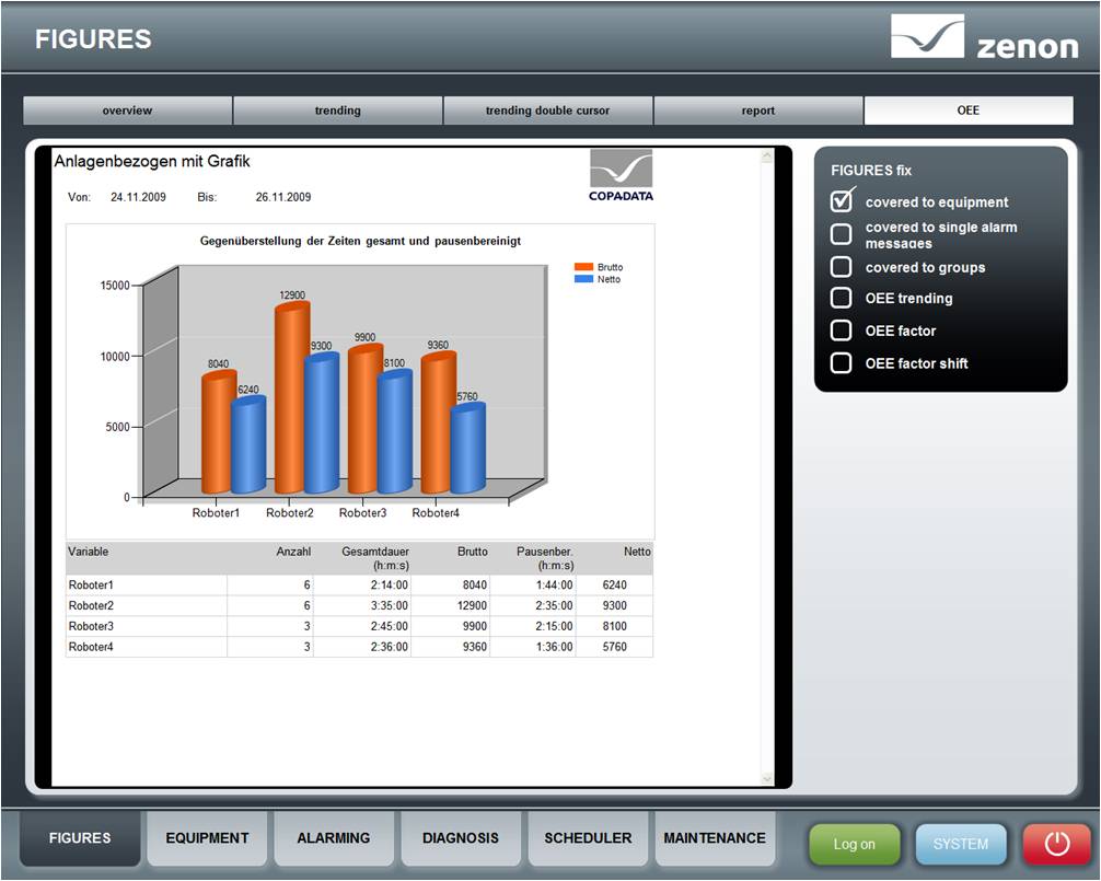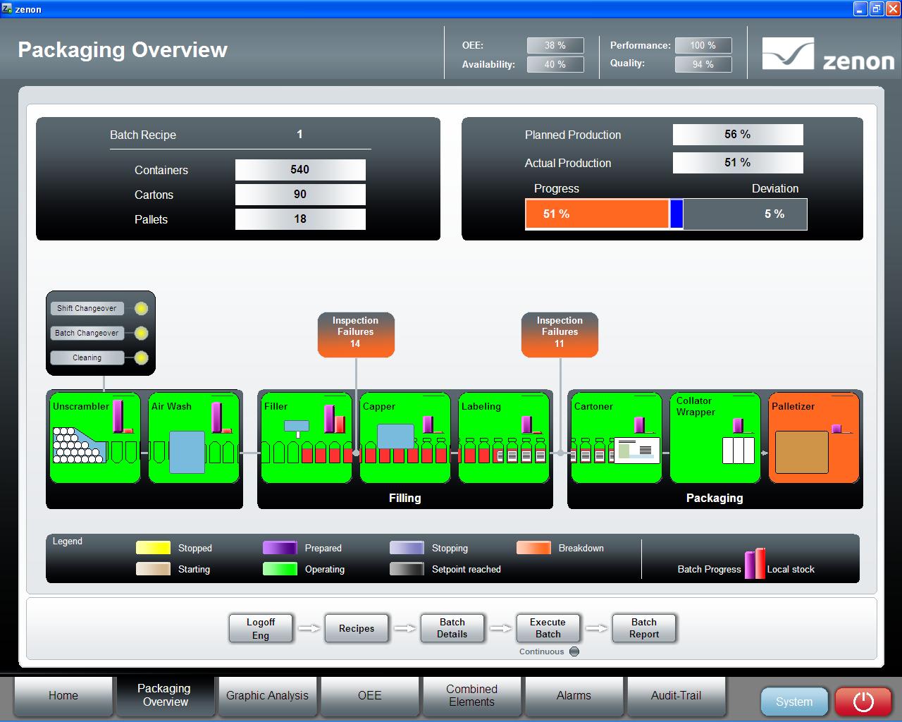 Благодаря тому, что zenon эффективно работает как на панелях оператора, которые устанавливаются непосредственно на оборудовании, так и на центральных серверных рабочих станциях диспетчерских пунктов, процесс производства находится под полным контролем. Вся информация в онлайн режиме поступает не только на монитор дежурного оператора, но и в плановые и аналитические отделы предприятия.