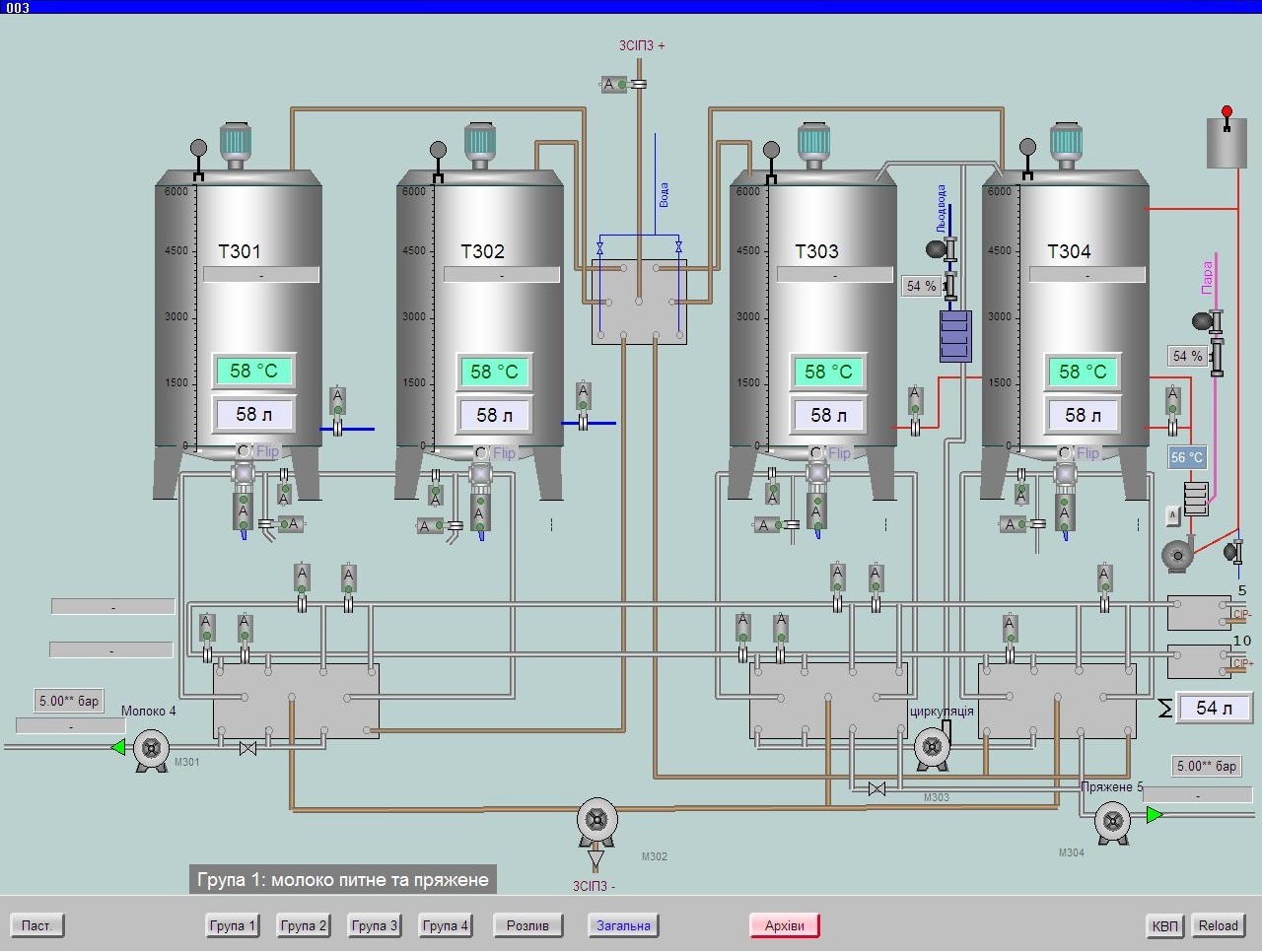 Згідно з завданням по модернізації цеху кисломолочної продукції, комплексній автоматизації підлягали 17 танків зберігання сировини, охолоджувачі і нагрівачі продуктів та води, 8 ліній подачі напівпродуктів та 9 ліній вивантаження.