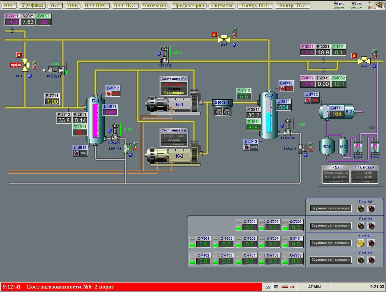 • контроль процесу і виведення параметрів аварійної та попереджувальної сигналізації на комп'ютер чергового диспетчера, ведення архіву подій.