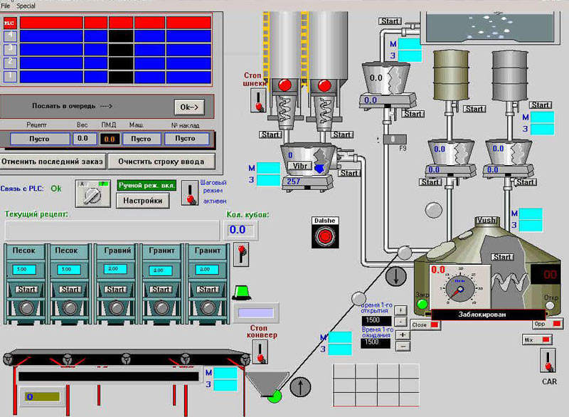 Контроль ходу виконання процесу, управління ним, ведення статистики і архівування виробничих даних здійснюється з пульта диспетчера за допомогою АРМ чергового оператора зі встановленою SCADA системою zenon.