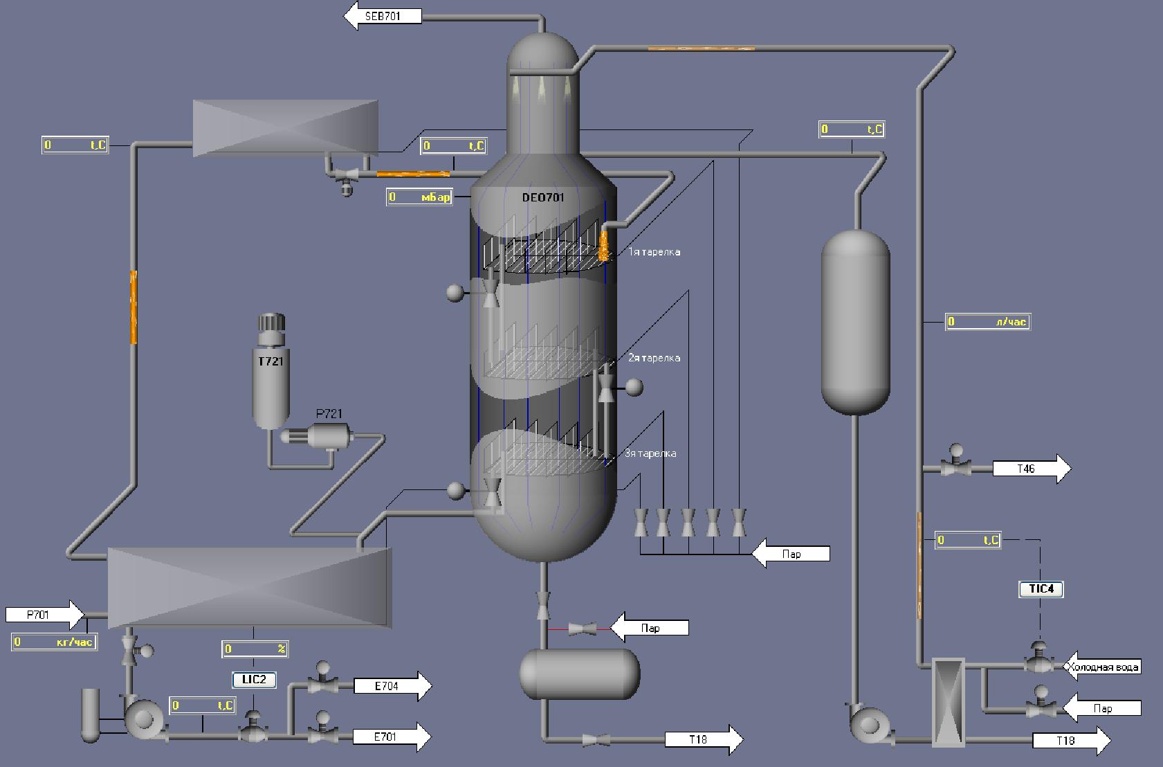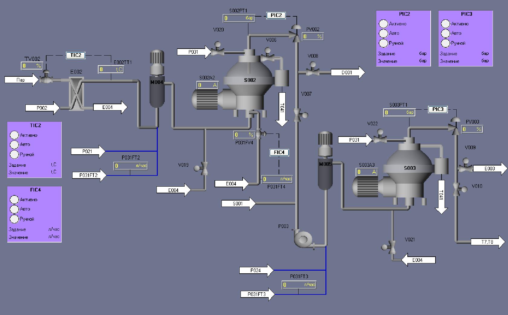Система призначена для забезпечення безперервного виробництва соняшникової олії. На мнемосхемах (512 точок в / в) відображається поточний стан установки, ведеться архівація даних, здійснюється автоматичне керування технологічним процесом, здійснюється спостереження за аварійними ситуаціями.
