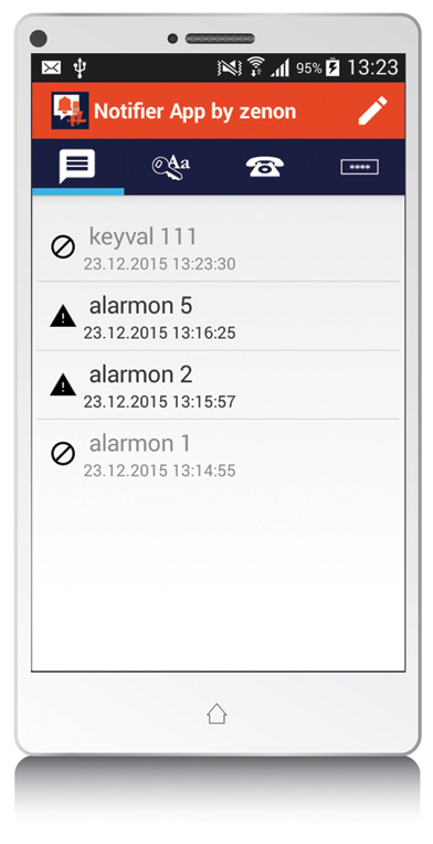 Було створено спеціальний додаток для мобільних телефонів - Notifier App. Дана програма виявляє сигнали тривоги, які відправлено модулем Message Control у вигляді SMS і у зручній формі дозволяє їх зчитувати та підтверджувати. Незалежно від того, де Ви знаходитесь, Ви завжди в курсі подій на виробництві.