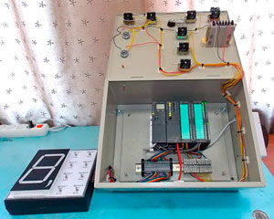 Также был создан "Стенд семисегментного индикатора", который подключается к дискретным входам/выходам контроллера. Установка предназначена для получения базовых знаний по разработке программного обеспечения ПЛК VIPA на основе комбинационных автоматов и связи SCADA системы zenon с ПЛК VIPA при помощи интерфейса Ethernet.